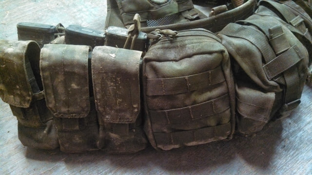 Some of these pouches are purchases, some are the issue style. At least one of these pouches was originally ACU pattern, but I use Krylon camo spray to make the whole belt green. Its just a case of using what you have, with a few purchases, to make a usable belt.