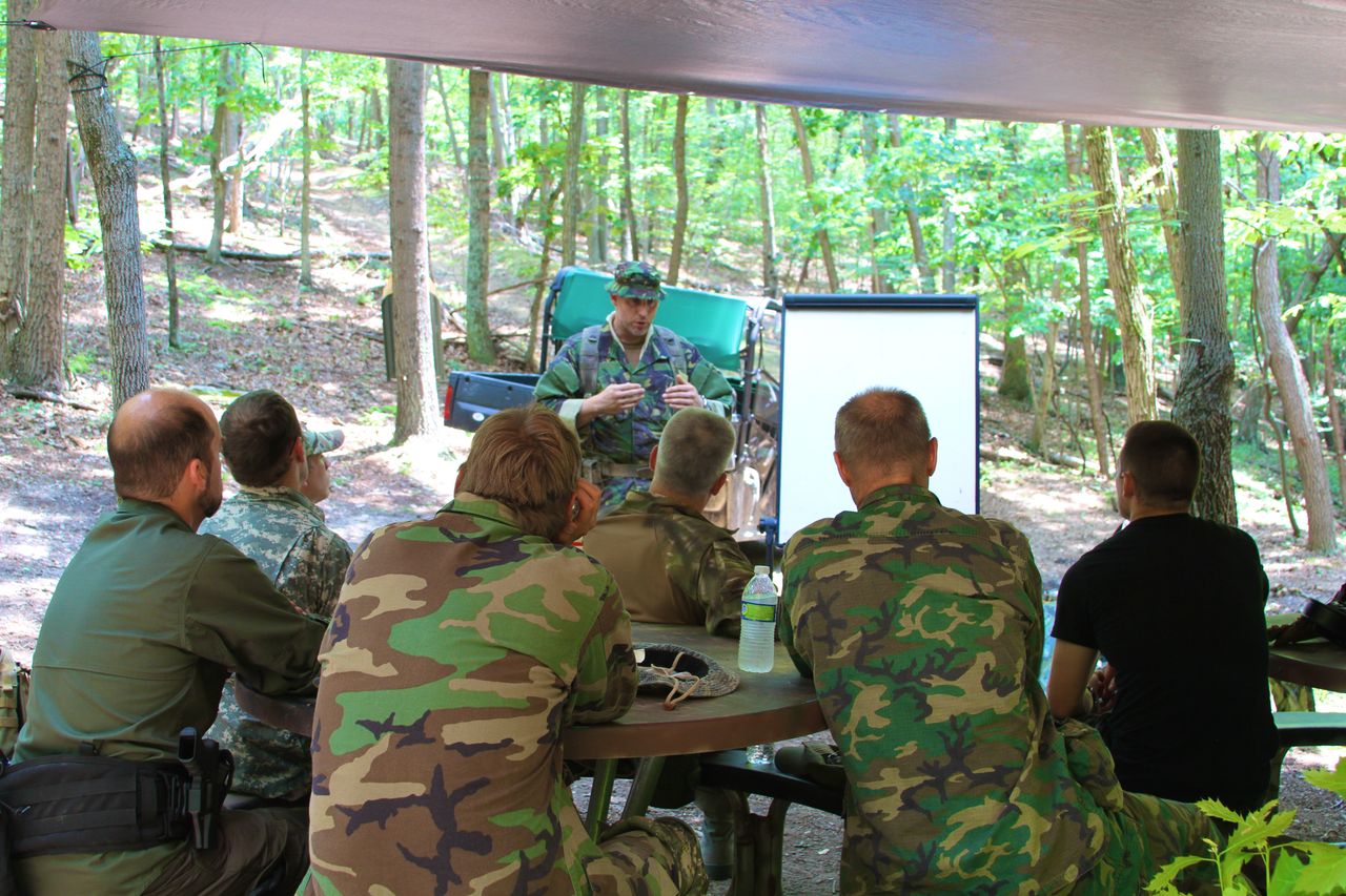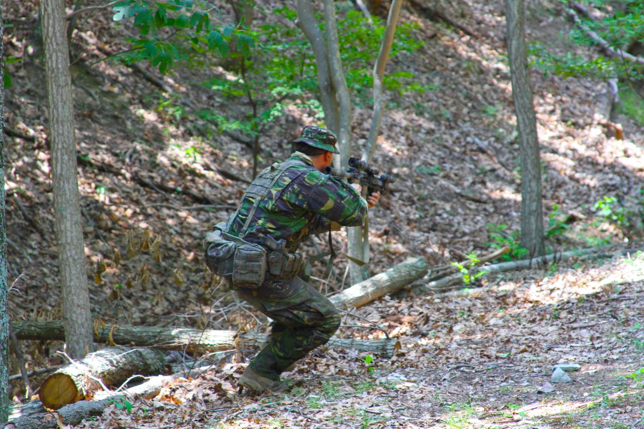 Above: Day 1: Individual Reaction Drills: Contact Left: Return Appropriate Fire after taking cover (simulated by kneeling here)